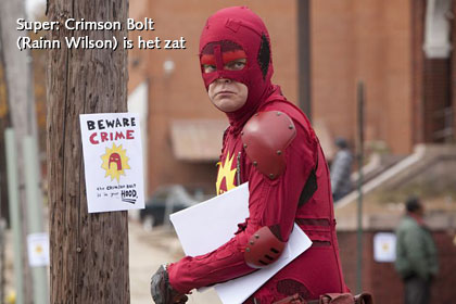 gefrustreerde burgerman Frank (Rainn Wilson) zich als The Crimson Bolt aan