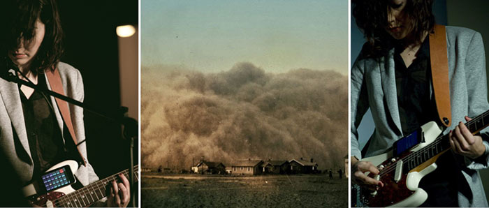 sfeer, mooi verbeeld door de naderende stofstorm op het hoesje. De sound